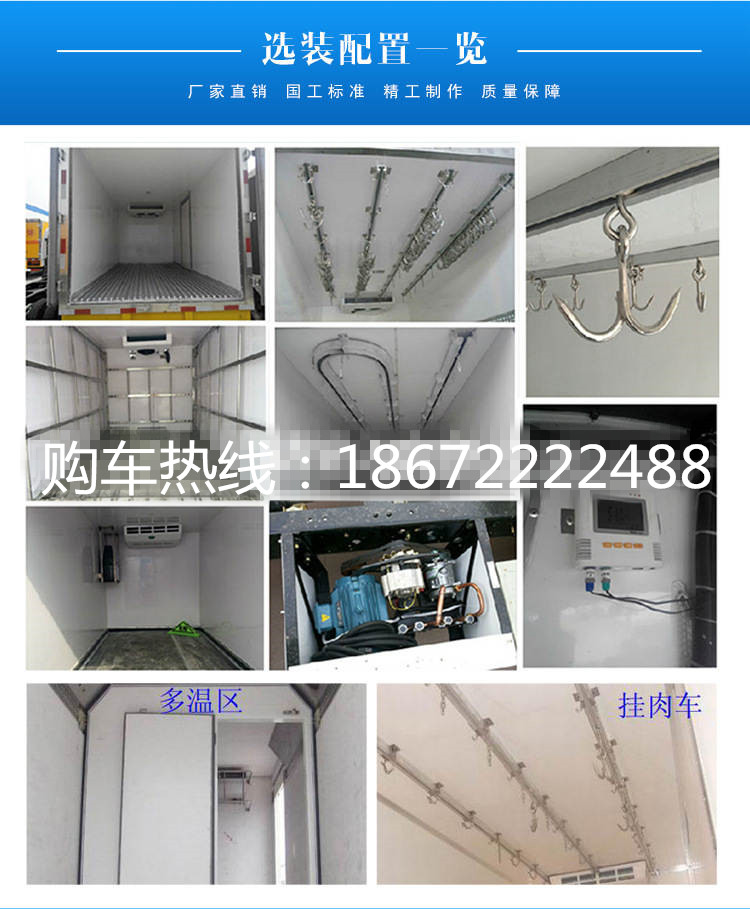 躍進(jìn)3.2米小型冷藏車箱體采用三明治結(jié)構(gòu),內(nèi)外采用冷藏車專用玻璃鋼(可反射陽(yáng)光可選用不銹鋼),中間保溫層采用聚氨酯發(fā)泡隔熱材料,18米罐注一次成型,產(chǎn)品重量輕,漏熱率(導(dǎo)熱系數(shù))低,強(qiáng)度高,保溫效果好,廂體美觀大方扎實(shí)耐用。廂體厚度8CM.廂體全為不銹鋼鎖件,鋁合金包角,廂體可選裝通風(fēng)槽、開側(cè)門等。根據(jù)需要可選裝配國(guó)內(nèi)外知名制冷機(jī)組(溫度達(dá)到保鮮或冷凍要求),可根據(jù)您的需求進(jìn)行定制生產(chǎn)。